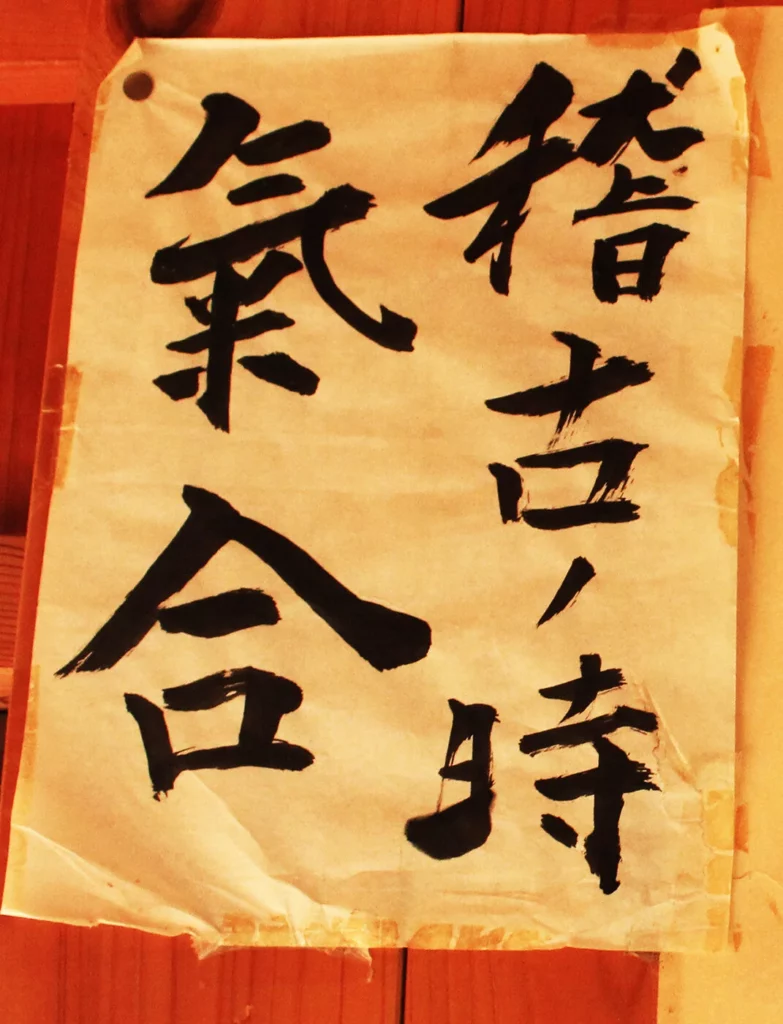 De manière générale, on trouve accroché au mur du Dojo un extrait du manuel Budo écrit par Ô sensei en 1938 et traduit en anglais. Il détermine en quelques mots l’attitude à avoir pendant la pratique.